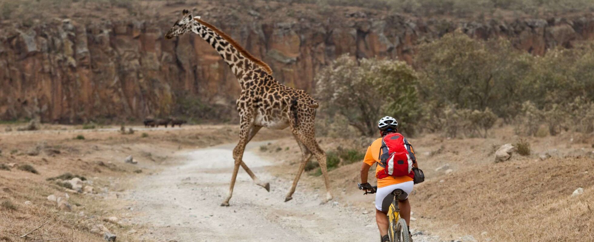 Explora el maravilloso paisaje del Gran Valle del Rift en un recorrido en bicicleta desde Chui Gate hasta el Parque Nacional Hell’s Gate. Durante esta ruta de 44 kilómetros, pedaleas a través de pintorescos pueblecitos y hermosos paisajes, junto a cebras, jirafas y numerosas especies de aves. Al llegar al parque, decides si prefieres volver sobre tus pasos o continuar explorando el interior (sin coste adicional). Dentro del parque, te esperan impresionantes acantilados, formaciones rocosas imponentes, desfiladeros y una gran variedad de animales. Esta actividad es fascinante y una manera ideal de mantenerse activo durante las vacaciones.