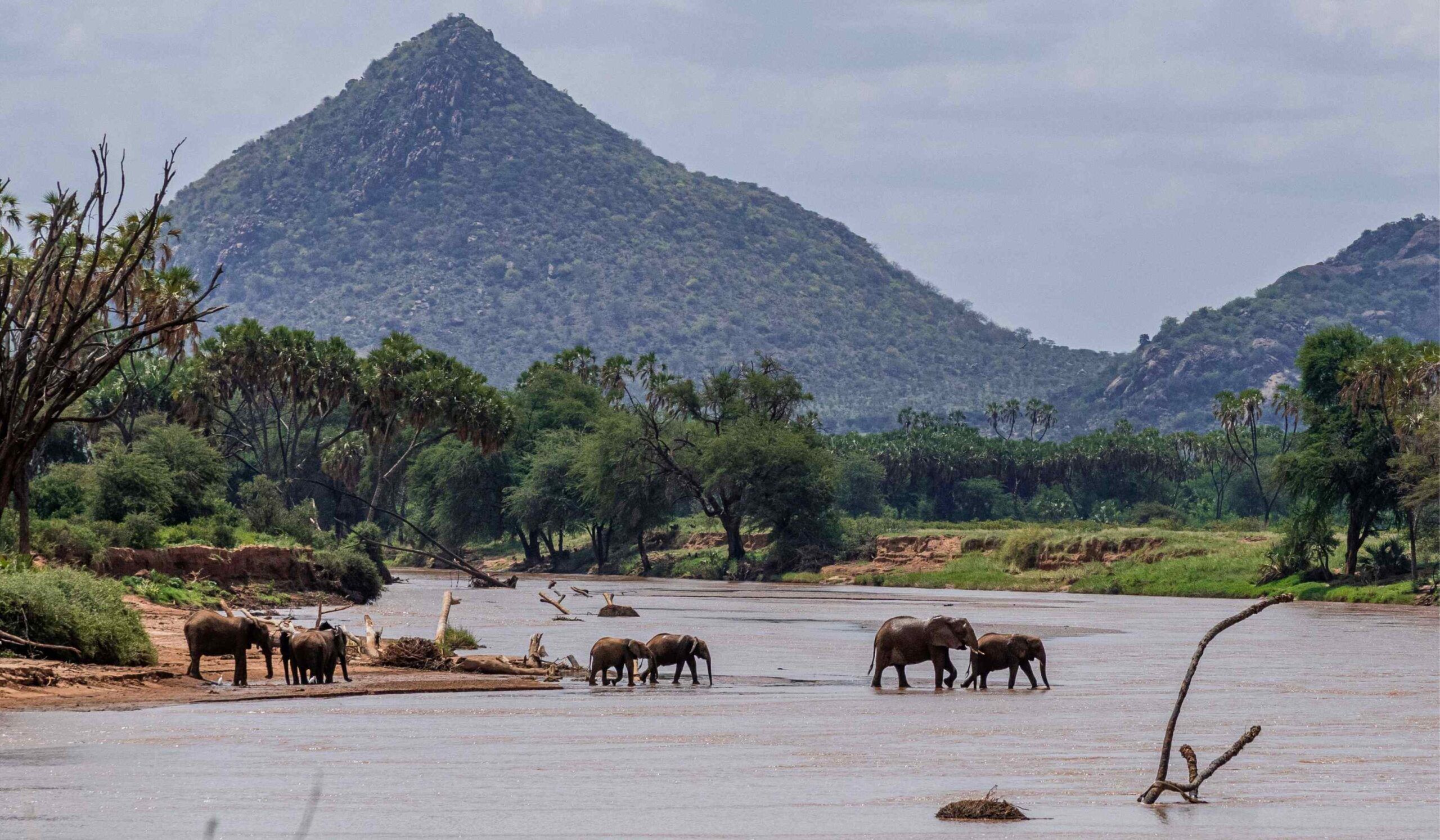 La Reserva Nacional de Samburu es un lugar ideal para empezar tu ruta de safaris. Goza de un paisaje seco semidesértico y de sabana que permite avistar a todo tipo de animales desde lejos. Es el hogar de los «Cinco del Norte», también llamados los «Cinco Especiales de Samburu»; son muy poco comunes y solo pueden verse en un mismo lugar aquí, en Samburu, de ahí su nombre. El río Ewaso Nyiro, en el centro del parque, es perfecto para ver a todos estos animales, mientras que en las afueras del parque tienes la oportunidad de visitar a la fascinante tribu samburu para aprender sobre su curioso estilo de vida.