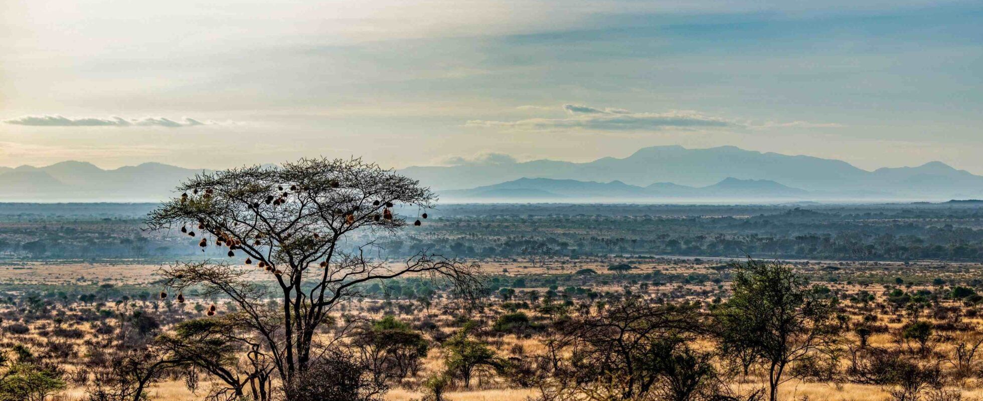 La Reserva Nacional de Samburu es un lugar ideal para empezar tu ruta de safaris. Goza de un paisaje seco semidesértico y de sabana que permite avistar a todo tipo de animales desde lejos. Es el hogar de los «Cinco del Norte», también llamados los «Cinco Especiales de Samburu»; son muy poco comunes y solo pueden verse en un mismo lugar aquí, en Samburu, de ahí su nombre. El río Ewaso Nyiro, en el centro del parque, es perfecto para ver a todos estos animales, mientras que en las afueras del parque tienes la oportunidad de visitar a la fascinante tribu samburu para aprender sobre su curioso estilo de vida.