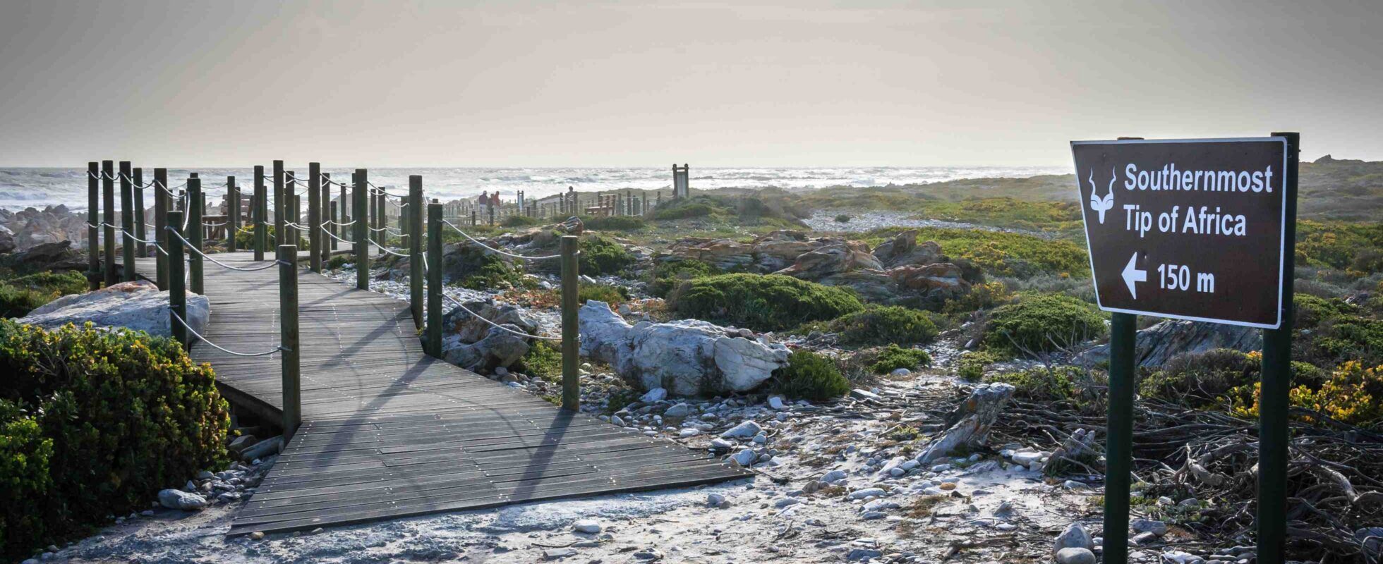 Visita el extremo sur de África, donde confluyen el océano Índico y Atlántico. Frente a la costa se alza el Faro de Cabo de las Agujas, el segundo más antiguo del país aún en funcionamiento, que regala vistas impresionantes del mar y una pincelada de historia marítima. Una pasarela conecta el faro con el monumento «Map of Africa» y con el hito de piedra que marca el punto más meridional del continente. Si sigues un poco más el sendero, encuentras el pecio del Meisho Maru, cuyos restos oxidados son un recordatorio del poder del mar y un lugar especial para los amantes de la fotografía. Ven por sus paisajes, por su historia o por la magia de sentir que estás en el punto donde África se acaba.