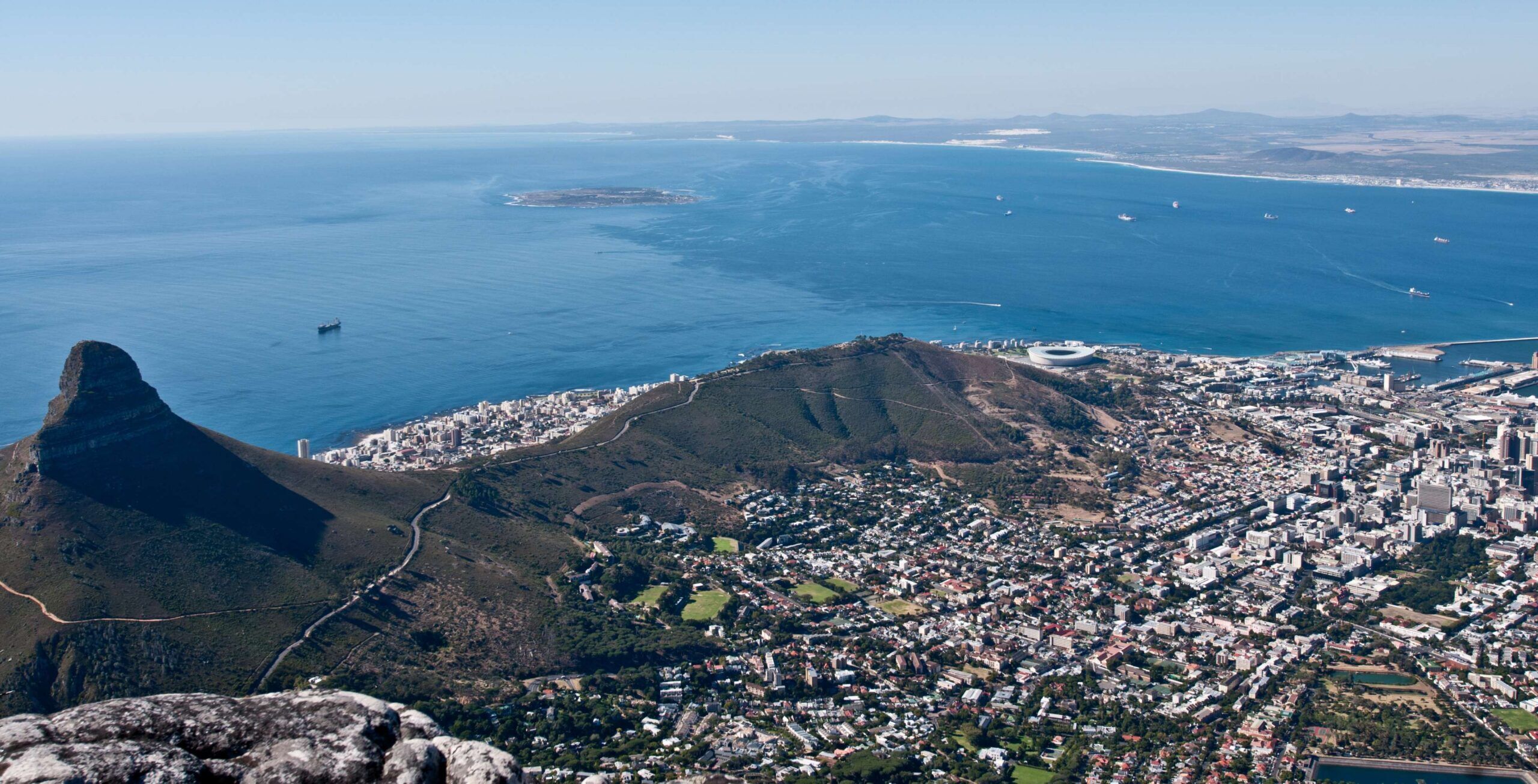 Visita la cima de la Montaña de la Mesa para disfrutar de unas vistas impresionantes de Ciudad del Cabo, el océano Atlántico, el puerto y Robben Island. Si te gustan los retos, puedes hacerlo siguiendo una ruta de senderismo que dura de dos a tres horas y que requiere buena condición física. Otra opción más cómoda es usar el teleférico para el que puedes reservar los billetes con siete días de antelación por internet. Una vez en la cima, aprovecha para admirar el paisaje, tomar un aperitivo o unirte a un tour guiado —que parte desde la terraza Twelve Apostles (bajo el restaurante TEN67) y se realiza todos los días de 9:00 a 15:00— para conocer más sobre la historia de la Montaña de la Mesa y su teleférico.