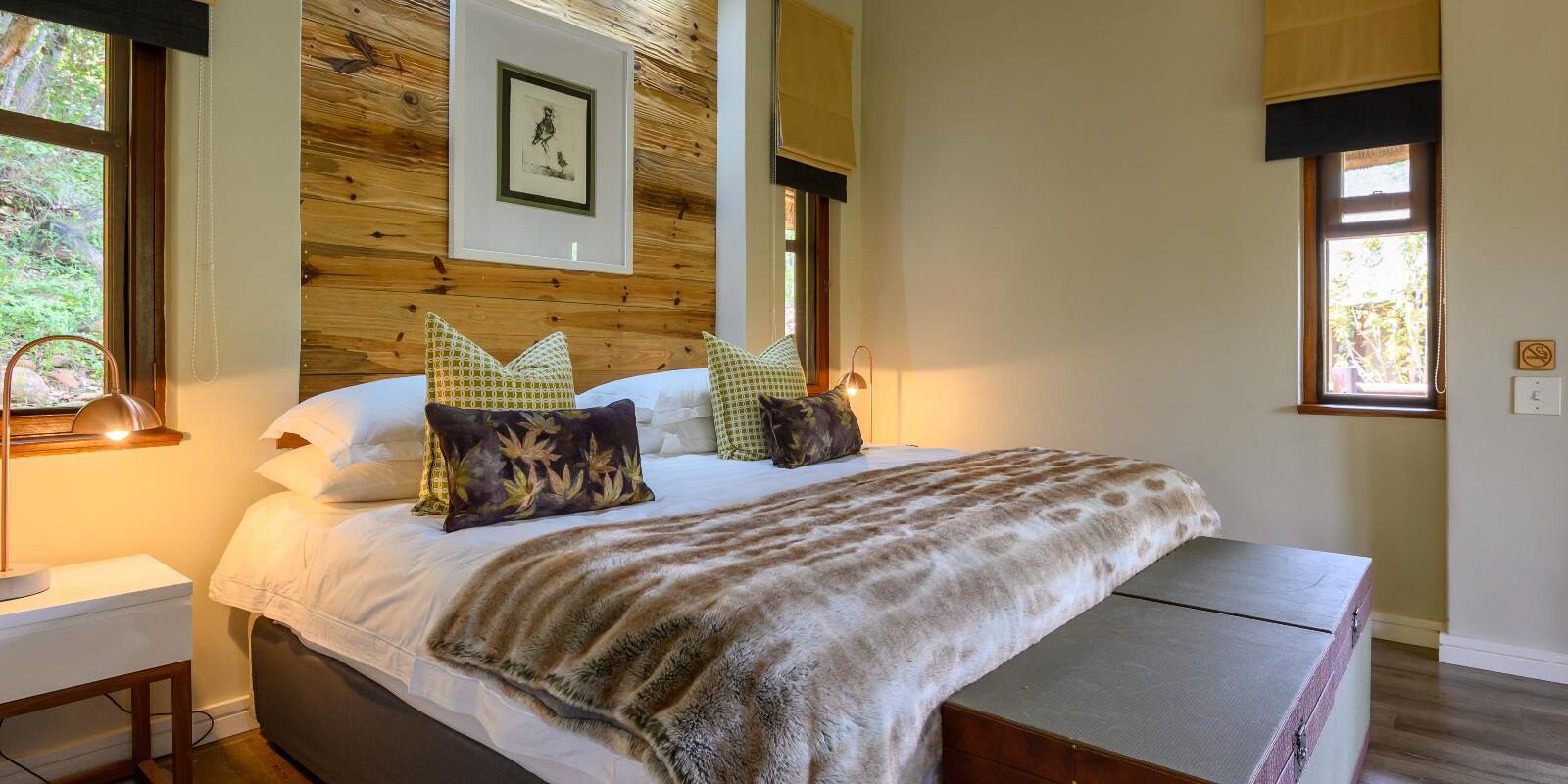 En la reserva natural Welgevonden (justo al pasar la entrada principal), en la provincia de Limpopo, y a dos horas y media del Aeropuerto Internacional de Johannesburgo, se encuentra Bontle Game Lodge, un alojamiento de primera que ofrece una experiencia exclusiva y de cinco estrellas en sus cinco habitaciones. Todas las habitaciones tienen techos altos de paja, puertas tradicionales con red, ventiladores, terrazas privadas y baños integrados con bañera y ducha al aire libre. Es posible que veas fauna salvaje paseando, ya que las habitaciones están muy cerca de un río y de senderos frecuentados por animales. Date un chapuzón en la piscina, disfruta de una bebida en el bar o junto a la hoguera, visita la tienda de curiosidades y deléitate con una buena comida preparada por un chef privado con influencias africanas e internacionales (desayuno, almuerzo y cena disponibles).