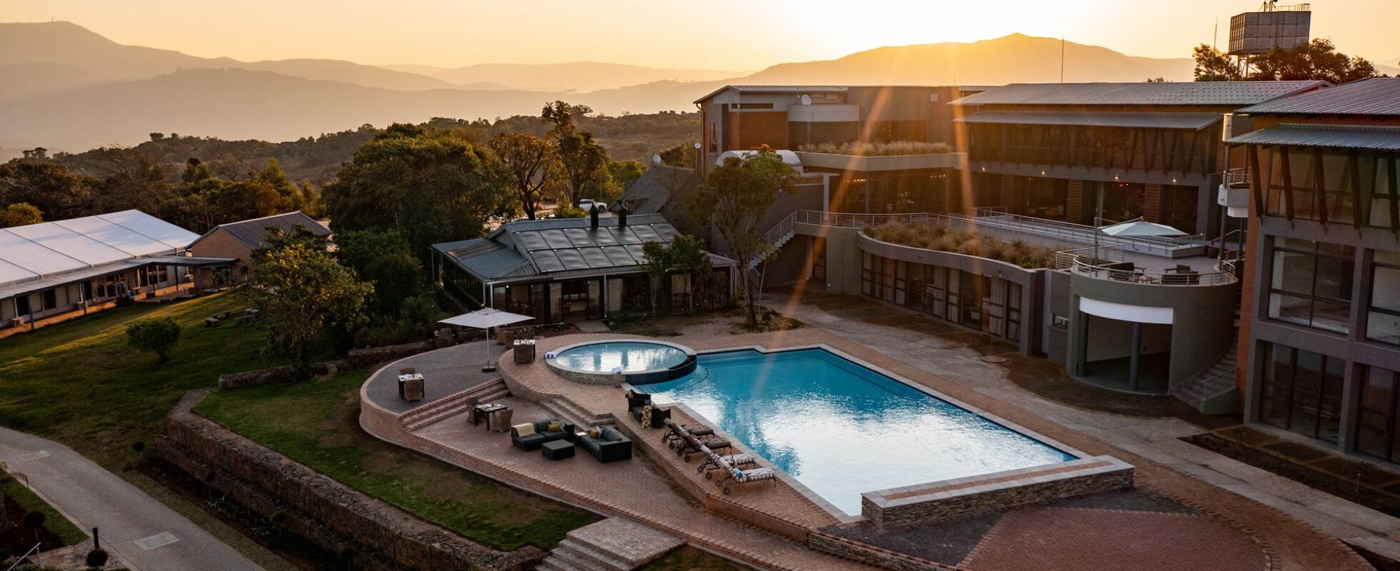 Hoyohoyo Angels View Graskop es un hotel de diseño elegante, ubicado en la escarpada cordillera de Drakensberg, a las puertas de la Ruta Panorama, cerca de la Ventana de Dios, en Graskop, Mpumalanga. Situado en una finca de cien hectáreas con jardines espectaculares, ofrece habitaciones de lujo en distintas configuraciones, con capacidad para entre 2 y 8 personas. Todas están equipadas con amplias salas de estar y terrazas privadas que brindan vistas impresionantes. Además, cuentan con baños integrados con bañeras exentas y duchas tipo lluvia sin marco, aire acondicionado, cocinas pequeñas, televisión por satélite y wifi gratuito. El hotel dispone de una piscina, bar junto a la piscina, biblioteca y un restaurante con comedor privado para hasta 12 invitados. También hay una pista de aterrizaje privada (Aeródromo de Graskop) disponible para quienes lleguen por vía aérea.