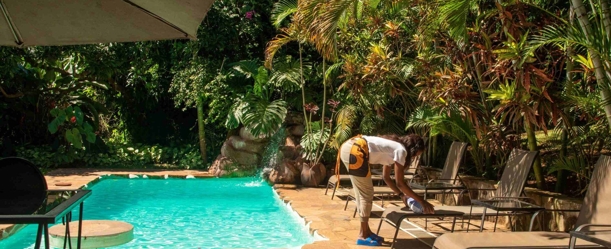 Karibu Guesthouse Entebbe es un hotel boutique pequeño, pero con mucho encanto, situado en los jardines de lo que antiguamente fue una residencia presidencial, a solo 10 minutos del Aeropuerto Internacional de Entebbe. Cuenta con ocho habitaciones, todas con acceso directo al jardín, baño privado con duchas de alta presión, camas tamaño king (tanto dobles como individuales) y conexión a internet de alta velocidad. En un rincón del hotel se encuentra la Agama Cottage, con capacidad para cuatro personas. Dispone de dos dormitorios dobles con aire acondicionado, un salón con televisión OLED y acceso a Netflix, comedor, un baño moderno con dos inodoros, jardín privado y una terraza en la azotea con vistas al lago Victoria. El restaurante, a cargo del propietario de origen corso, ofrece una cocina de inspiración mediterránea; se puede comer o tomar un aperitivo en el exterior, en el interior o junto a la piscina rodeado de vegetación, si el clima lo permite