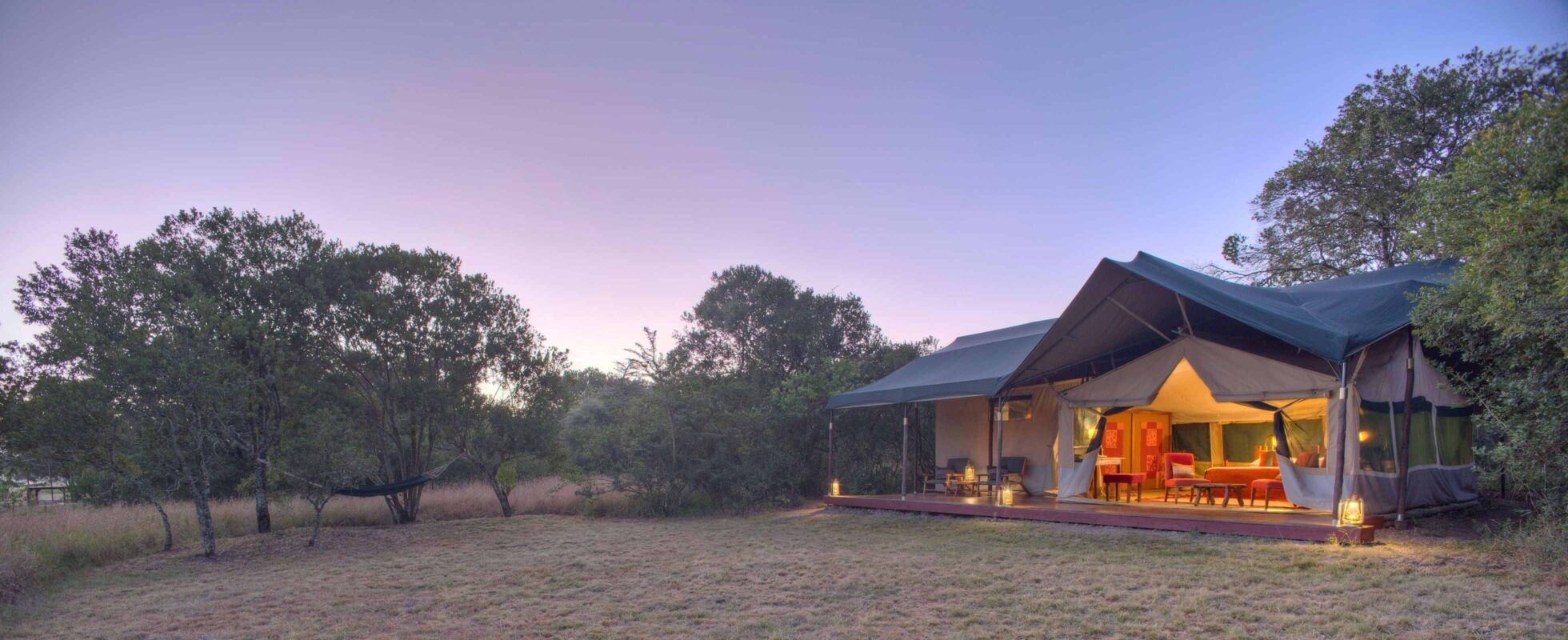 Cuenta con un total de seis tiendas con un mobiliario lujoso, una de las cuales es una suite familiar con dos dormitorios y unos cuartos de baño encantadores, cómodas camas y un porche privado desde el que podrás disfrutar de unas vistas maravillosas de un estanque cercano que, durante la estación seca, es un imán de vida salvaje.