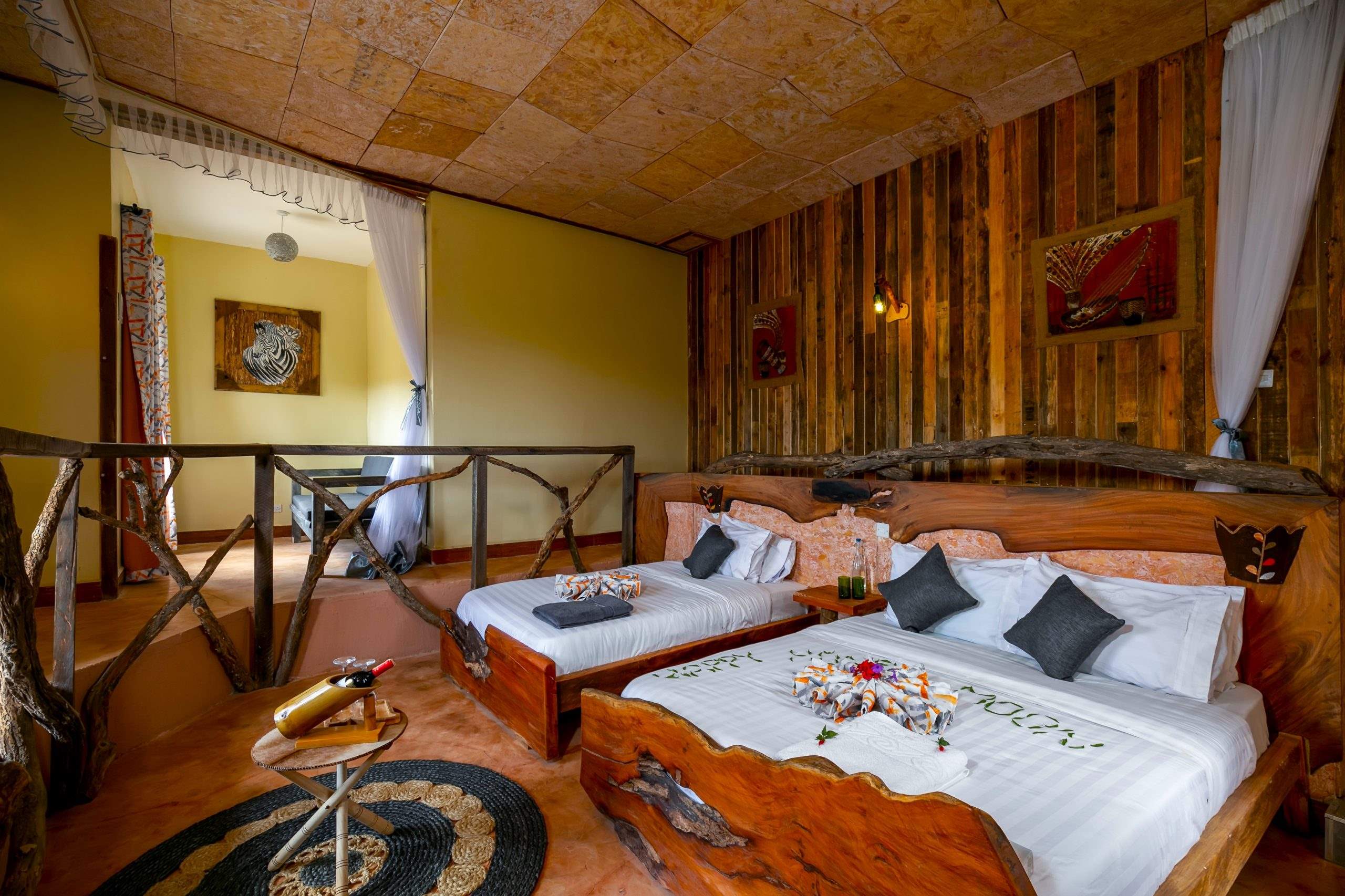En la colina de Kigarama, a las afueras del Parque Nacional del Lago Mburo, se encuentra el Kigarama Wilderness Lodge, un alojamiento ecológico con 12 habitaciones espaciosas de temática africana. Estas cuentan con techos tradicionales de paja, muebles de madera, puertas rústicas, y todas las comodidades, así como con duchas o bañeras de agua caliente para que puedas relajarte tras un largo día de safari.