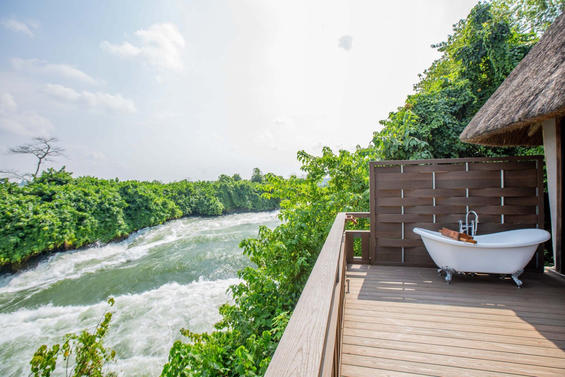 Wildwaters Lodge es un refugio impresionante ubicado en su propia isla privada en medio del río Nilo. Disfruta de vistas impresionantes, relájate junto a la piscina o emprende emocionantes actividades como el rafting en aguas bravas.