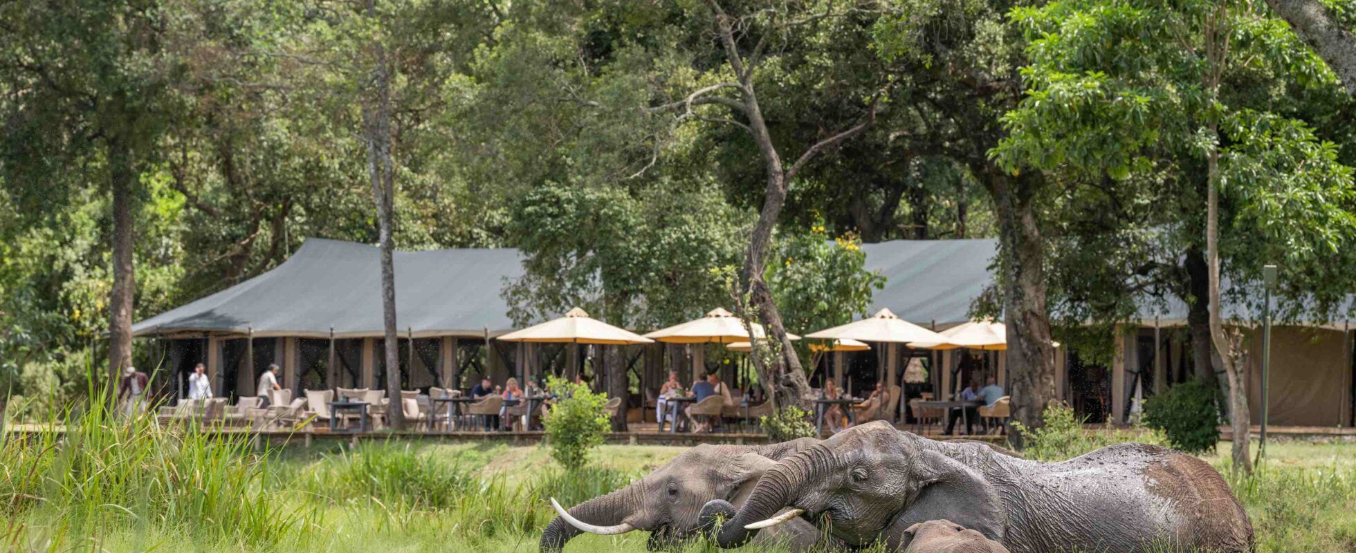El Wilderness Mara es un alojamiento íntimo, con solo 12 tiendas, situado alrededor de un abrevadero que atrae a numerosas especies . Está ubicado en el Mara Triangle, en el límite de la Reserva Nacional Masai Mara; una zona conocida por sus excelentes avistamientos. Las tiendas, situadas sobre tarimas de madera, cuentan con baño privado y porche, desde donde puedes ver el ir y venir constante de animales en el humedal que hay frente al campamento. El desayuno y el almuerzo se sirven al aire libre, y no es raro que una familia de facóqueros se acerque a curiosear entre las mesas. Como no hay vallas en el campamento, los animales (incluidos elefantes) deambulan libremente. Al caer la tarde, se enciende una hoguera frente al bar y se sirve la cena en el comedor. El campamento también dispone de salón, piscina, gimnasio, spa y un estudio fotográfico.