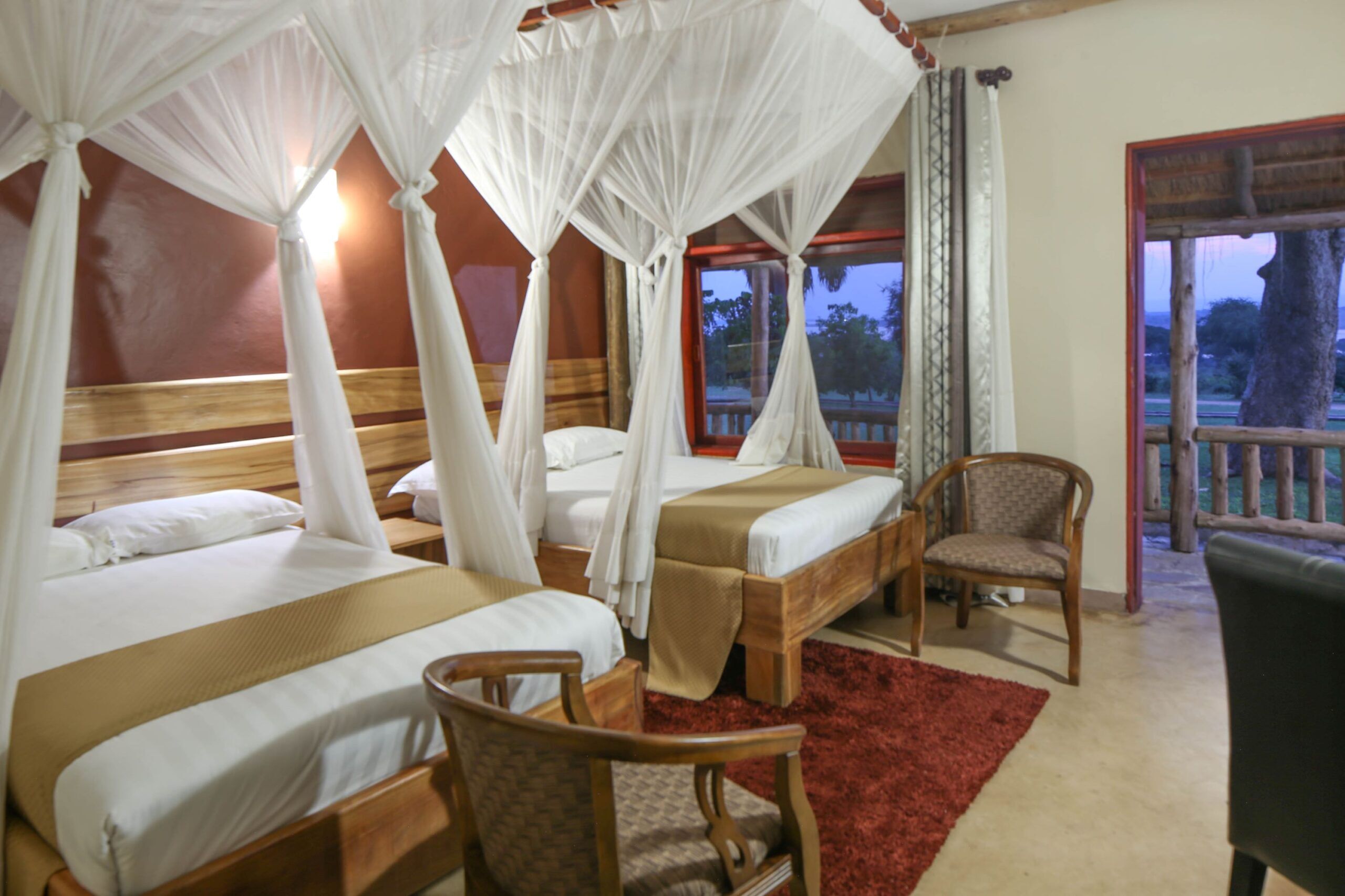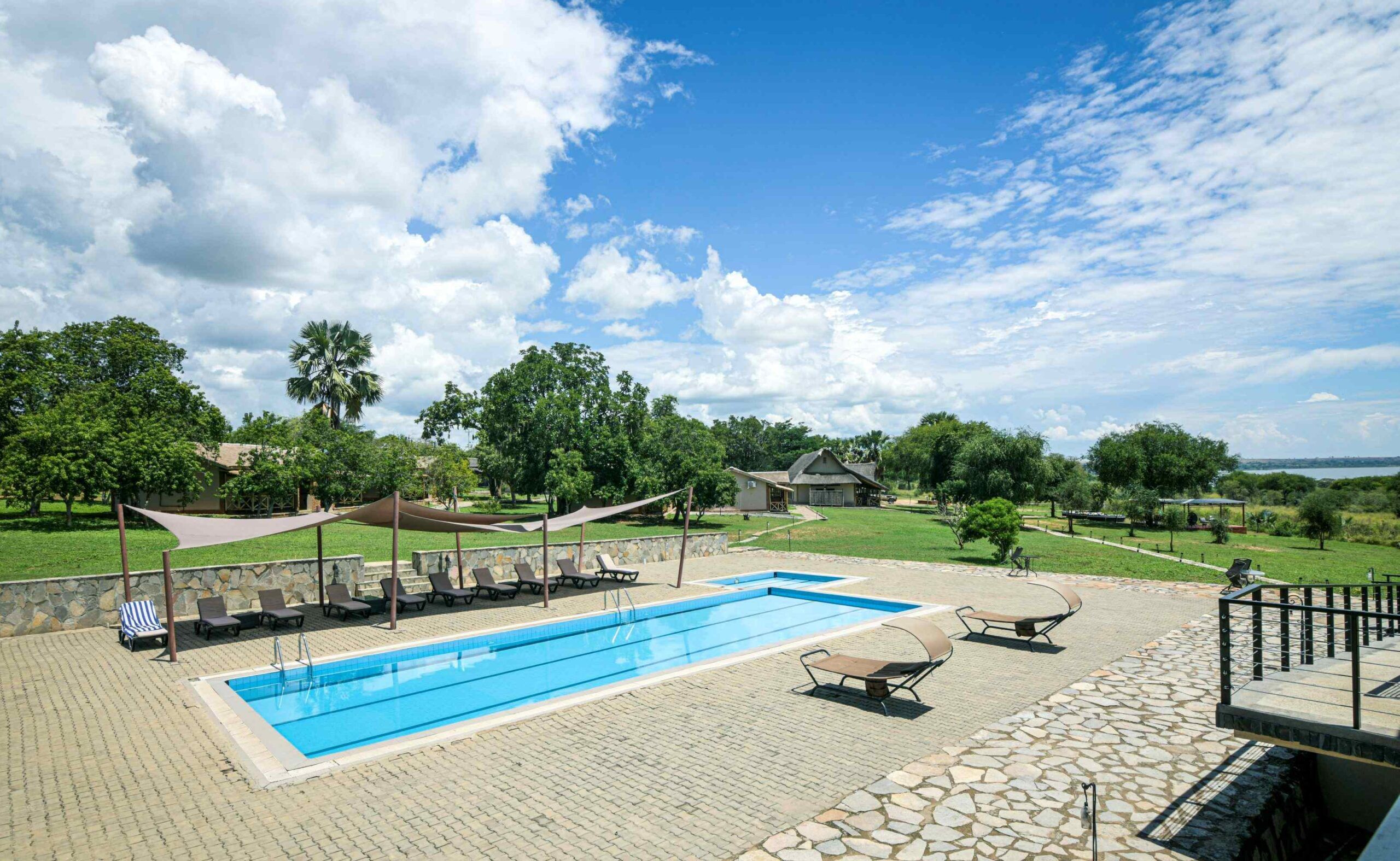 Pakuba Safari Lodge está ubicado en el Parque Nacional de las Cataratas Murchison, a orillas del río Nilo. Cuenta con 46 habitaciones espaciosas, construidas sobre plataformas y equipadas con terraza y grandes ventanales que permiten disfrutar de vistas al río. Todas las habitaciones tienen cama de matrimonio extragrande, baño privado con agua corriente (fría y caliente) e inodoro con cisterna. El edificio principal se erige en la orilla del río y cuenta con ventanales de cristal, que ofrecen una vista panorámica, una acogedora sala de estar y un restaurante de primera categoría. El lodge también dispone de piscina, con solárium y zona de bar. Además, cabe destacar el compromiso del alojamiento con la sostenibilidad mediante el uso de energía solar y un pozo propio.