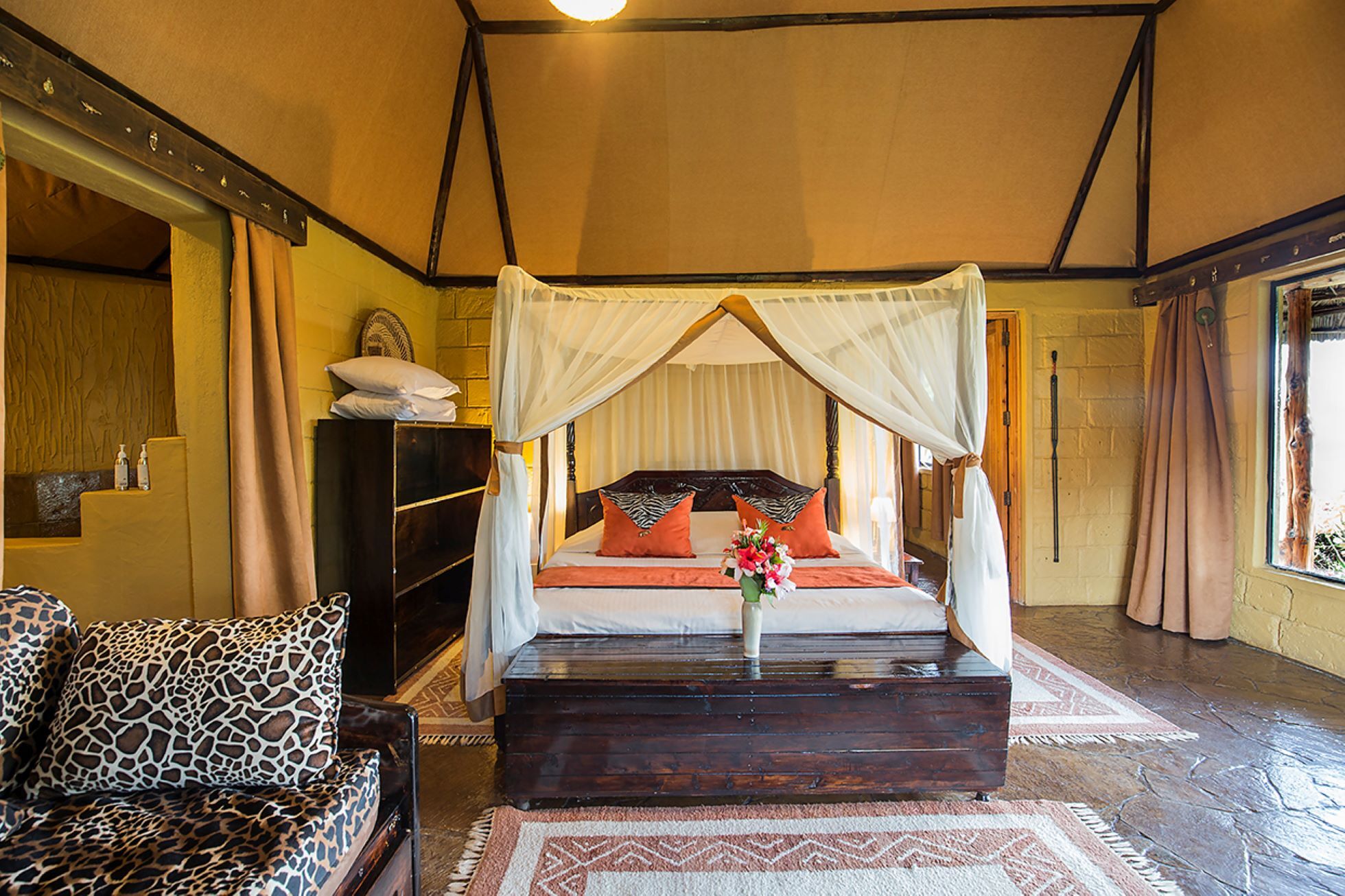 No existe un lugar mejor para alejarte de todas las preocupaciones y del estrés del día a día. Cuenta con 9 chalets dobles y 2 chalets familiares, así como con 9 tiendas de safari exclusivas. Todas las habitaciones están equipadas con todo lo necesario para pasar una estancia agradable. En el centro del alojamiento, hay un estanque donde anidan numerosos pájaros tejedores junto al que también hay un pequeño bar. La zona de spa tiene su propia sauna, un relajante jacuzzi y una sala de masajes. Si necesitas relajarte después de un agotador día de safari, este es tu lugar. Después, no dudes en tomarte una bebida refrescante al atardecer en el bar y algún que otro manjar en el restaurante de la sabana.