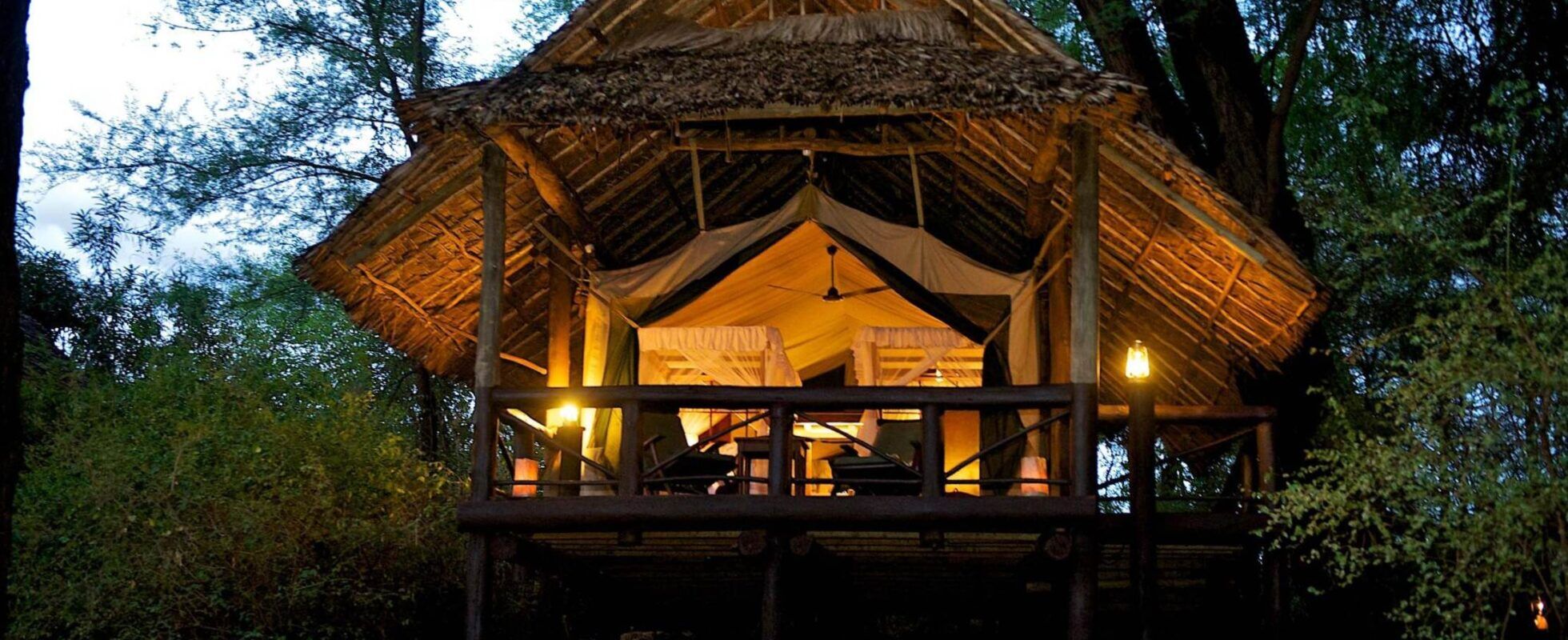 Dispone de 28 tiendas modernas y espaciosas, con un porche privado desde el que disfrutar de unas vistas impresionantes al río. Las habitaciones tienen un estilo rústico y están bien equipadas con cómodas camas, armarios, escritorios y cuartos de baño privados con duchas de agua caliente. En definitiva, ¡este alojamiento lo tiene todo! Como zonas comunes tiene un restaurante que también presume de un estilo tradicional y acogedor, con mobiliario de madera en el que se sirven deliciosas comidas y una piscina perfecta para refrescarse y para contemplar el asombroso cielo africano. Además, al estar tan cerca del ecuador, el cielo estrellado por la noche es fascinante.