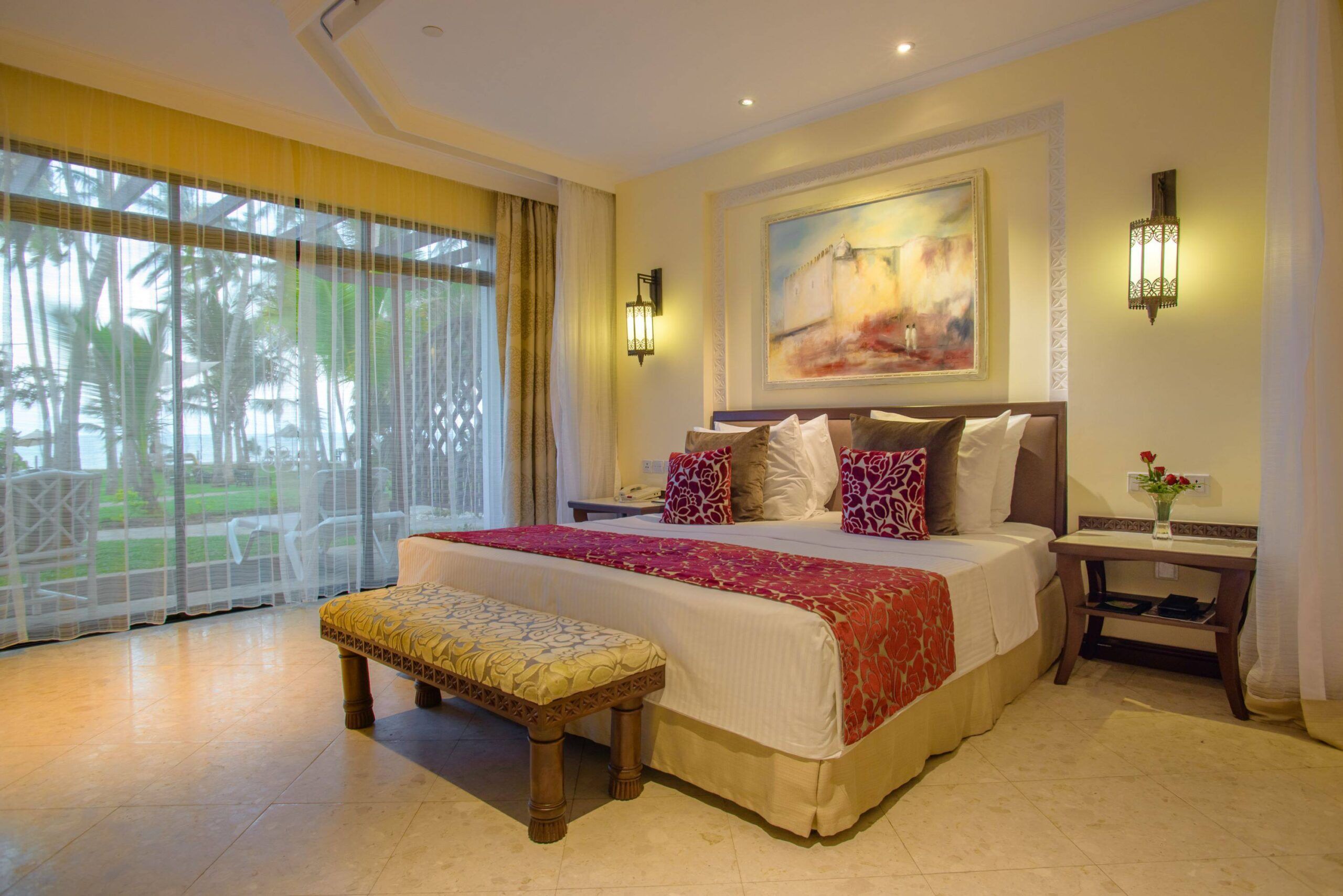 Sarova Whitesands Beach Resort and Spa es uno de los mejores hoteles de Mombasa y, además, se encuentra a solo 30 minutos en coche del centro de la ciudad. Cuenta con 340 habitaciones con su propia terraza, desde la que podrás disfrutar de unas vistas espectaculares al mar, a la piscina o al jardín. Frente a este alojamiento se extiende una de las playas más largas y hermosas del país, con una gran lista de actividades disponibles entre las que elegir: voleibol de playa, buceo en aguas profundas, paseos por la playa, etc. También hay muchas opciones a la hora de refrescarse, ya que el complejo cuenta con cinco piscinas (una de ellas dedicada especialmente para niños), un spa y, por supuesto, el océano Índico, ¡tú eliges!