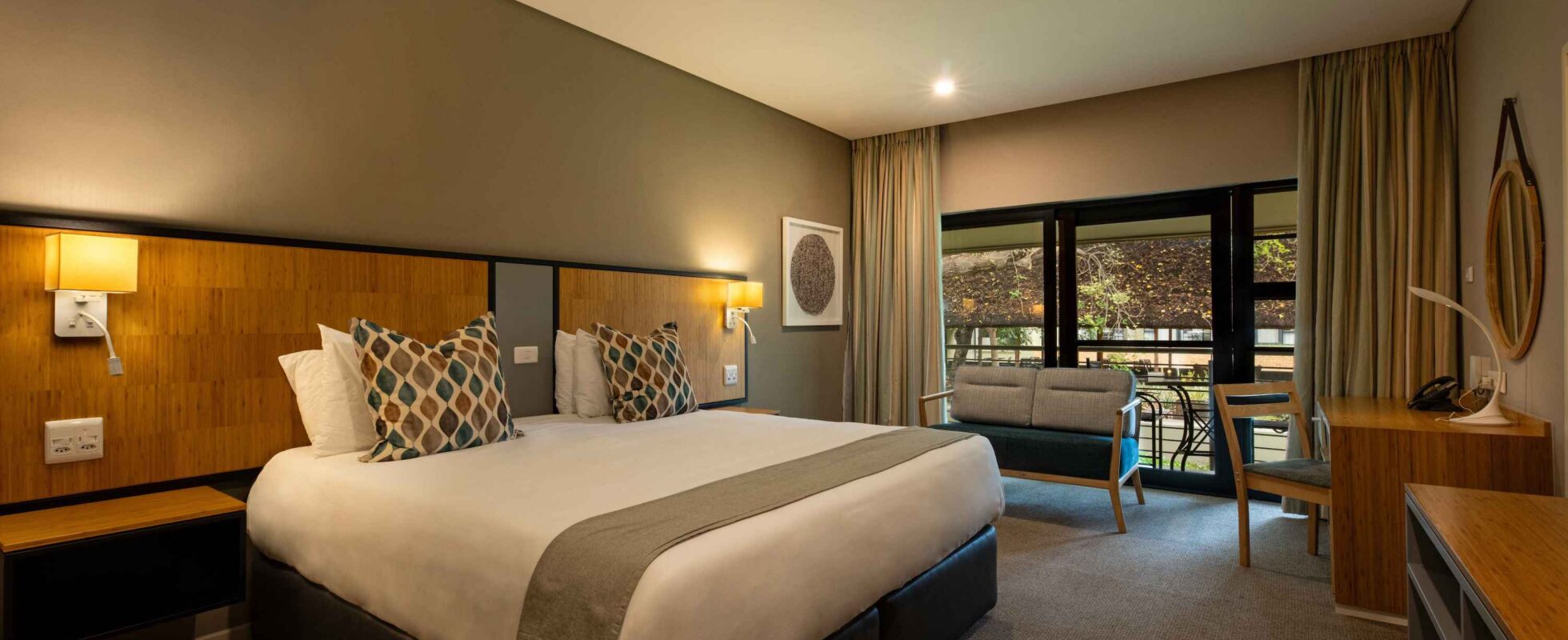 Skukuza Safari Lodge se encuentra dentro del conocido Skukuza Rest Camp, en pleno Parque Nacional Kruger. Cuenta con 128 habitaciones, incluidas opciones familiares. Todas están equipadas con baño privado con ducha a ras de suelo, camas tamaño king (o dos individuales), aire acondicionado, escritorio, minibar, caja fuerte, televisión por satélite, wifi y terraza. Tras una jornada de safari, nada mejor que relajarte en el bar compartiendo anécdotas con otros viajeros, disfrutar de la cocina del restaurante o refrescarte en la piscina. El alojamiento también dispone de un spa con tratamientos. Los más activos pueden acercarse al Skukuza Golf Club, uno de los campos de golf más singulares del mundo, rodeado de hipopótamos, impalas y facóqueros.