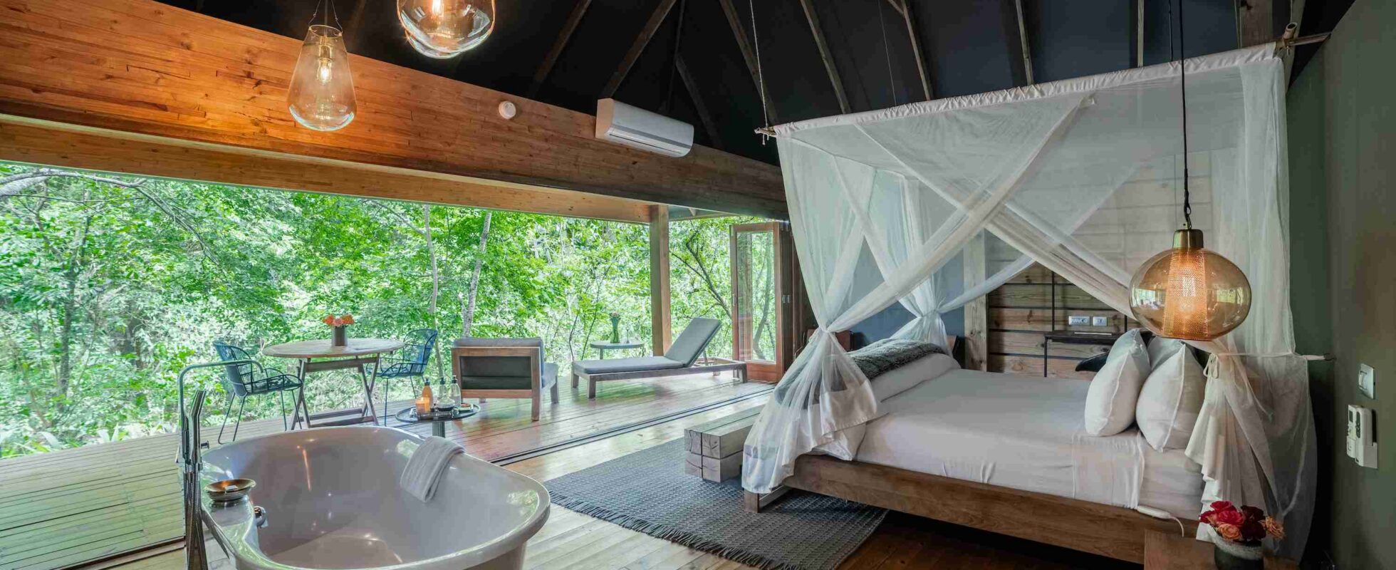 Summerfields Rose Retreat and Spa es un alojamiento de 5 estrellas en Hazyview, a 18 kilómetros del Parque Nacional Kruger, en una finca de macadamias a orillas del río Sabie. Todas sus suites tienen baño completo, ducha exterior y terraza y todo tipo de comodidades premium. El restaurante es exclusivo para huéspedes y ofrece desayunos, almuerzos y cenas preparados cada día con ingredientes frescos del huerto, aportando un auténtico toque «de la granja a la mesa». Con un spa junto al río y una piscina al aire libre, Summerfields se convierte en un lugar excelente para disfrutar de una escapada llena de confort.