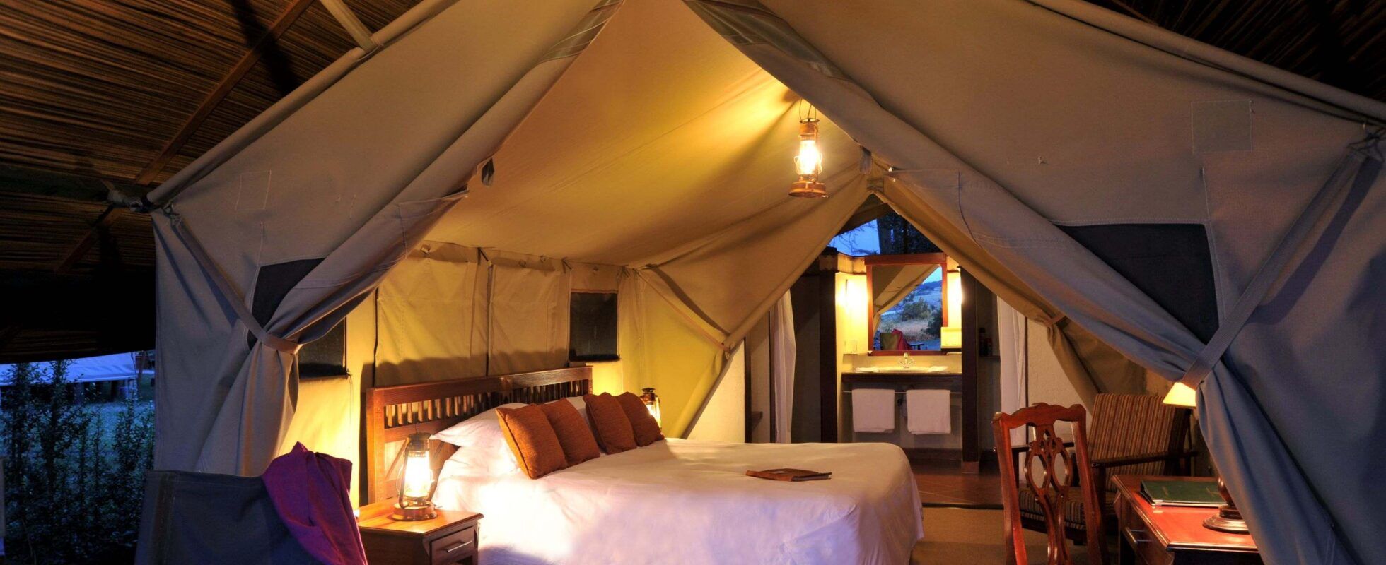Sweetwaters Serena Camp se encuentra en Ol’ Pejeta Conservancy y ofrece a sus huéspedes la posibilidad de dormir con los sonidos de la naturaleza de fondo. Cuenta con 56 tiendas de safari (de matrimonio, dobles y triples) decoradas con un precioso y cómodo mobiliario. Además, tiene una ubicación privilegiada para avistar a los Cinco Grandes, ya que todos ellos deambulan por Ol’ Pejeta y, en sus proximidades, hay un enorme estanque de agua al que acuden numerosos animales a lo largo del día para refrescarse e hidratarse.