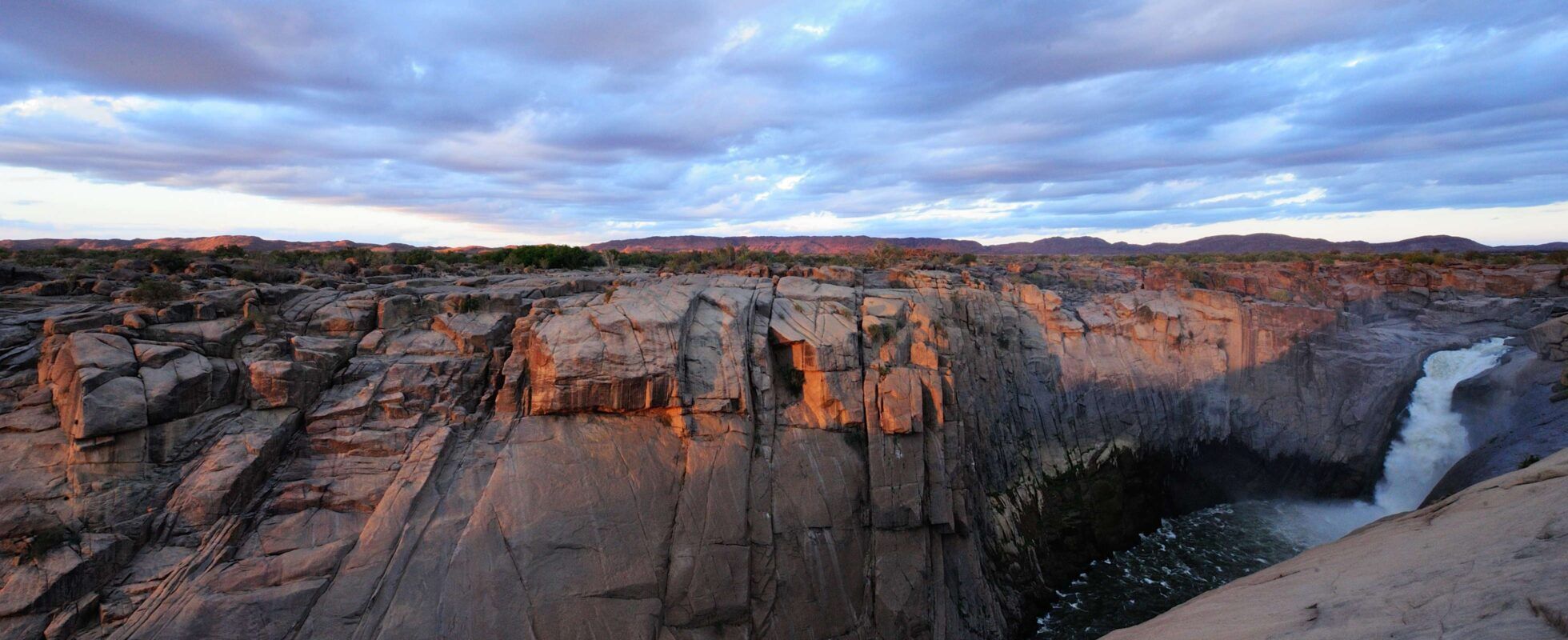 El Parque Nacional de las Cataratas de Augrabies, a 120 kilómetros al oeste de Upington, en la provincia del Cabo Septentrional, gira en torno a su imponente cascada de 90 metros, la principal atracción del lugar. Fue fundado en 1966 para proteger la biodiversidad del río Orange y conservar tanto la cascada como su entorno en su estado natural. Pero Augrabies es mucho más que su famosa cascada: impresionantes senderos, un entorno geológico fascinante y una fauna resistente adaptada a las condiciones del desierto, entre otros. Aunque no encontrarás grandes concentraciones de animales, la belleza del paisaje lunar de Augrabies te dejará sin palabras.
