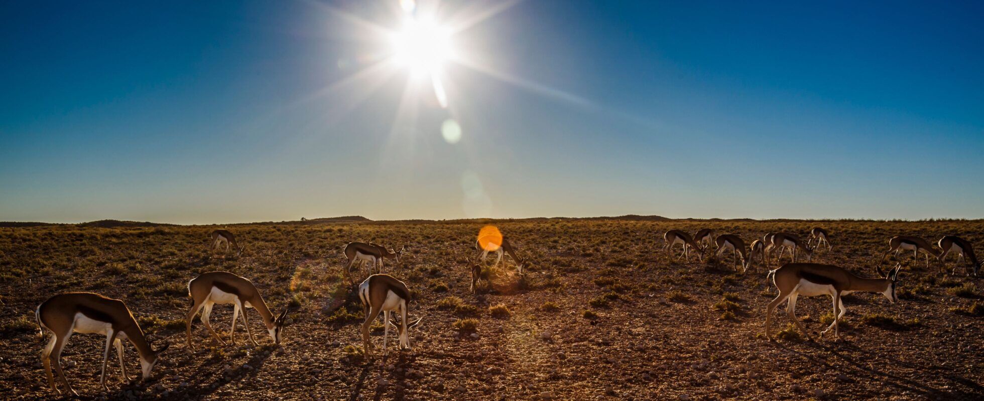 En esta región semiárida del Kalahari, el clima es extremo y las lluvias escasas. A pesar de la sequía generalizada, en los últimos años ha habido inundaciones puntuales. Durante el verano (de octubre a abril), las temperaturas pueden superar los 40ºC, mientras que en invierno (de mayo a septiembre), las noches son heladas, alcanzando hasta -11ºC en los días más fríos. Los extremos históricos del parque oscilan entre 45ºC y temperaturas bajo cero, con precipitaciones mínimas —apenas 127 mm en el este y hasta 350 mm en el oeste—. Es una auténtica zona de extremos, donde se siente la verdadera intensidad del desierto.